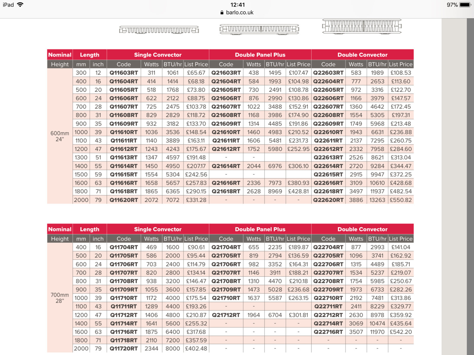 I found some pages giving guide heat output ratings for old radiators (single and double panels without fins) but i need to adjust this to my current flow temp to work out what i'm doing next.